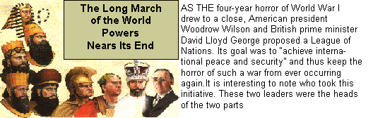 This is exactly what the Anglo-American World Power did. It urged "those who dwell on the earth" to make a League that looked and acted the way great governments do. But really it was only "an image to the wild beast." It had no power of its own, only what was given it by its member nations. It is not described as coming into power through some great military conquest, as world powers had done. Instead, it springs or comes from the seven world powers. It owes its existence not only to the seventh of them but also to other member nations that include remnants of the preceding six. Would this political image reach the high goals that its founders had hoped for?--Revelation 13:11, 14; 17:11.